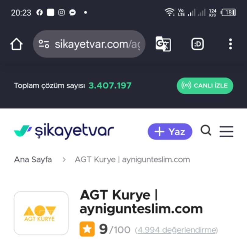 AGT Kuryenin faaliyetleriyle ilgili en net verilerden biri, internet üzerindeki "Şikayet Var" platformunda yer alıyor. Bu siteye baktığımızda 14.10.2024 itibariyle toplamda 3.407.197 şikayetin çözüme ulaştığı görülüyor. Ancak, çözüme ulaştı olarak görünen bu rakam, aslında sorunların boyutunu da ortaya koyuyor. Hâlâ devam eden, çözüme ulaşmayı bekleyen 47.174 kişi var...
