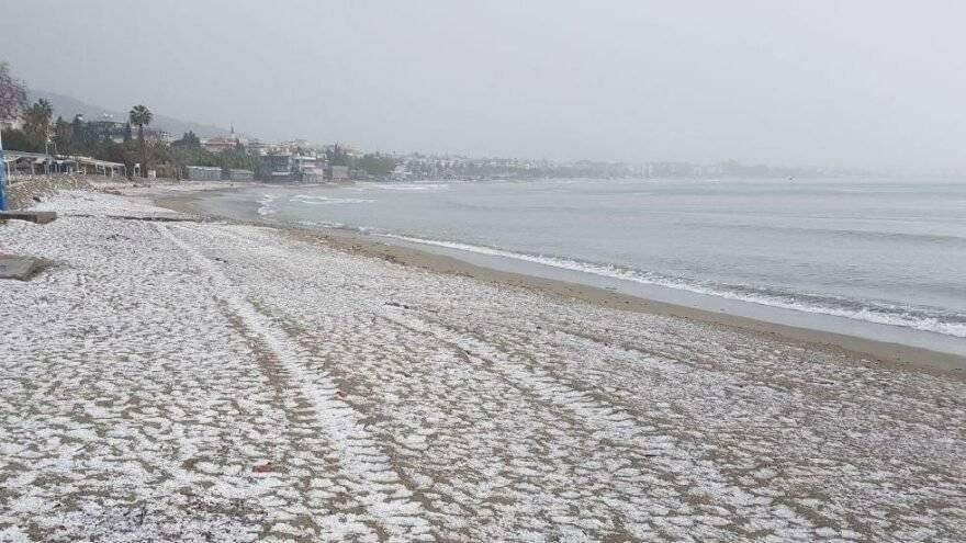 Beyaz örtüyle kaplanan sahilde yürüyen bir vatandaş da şaşkınlığını "Şu yaşıma kadar gördüğüm en tuhaf şeyi yaşıyorum. Her yer bembeyaz" sözleriyle anlattı.