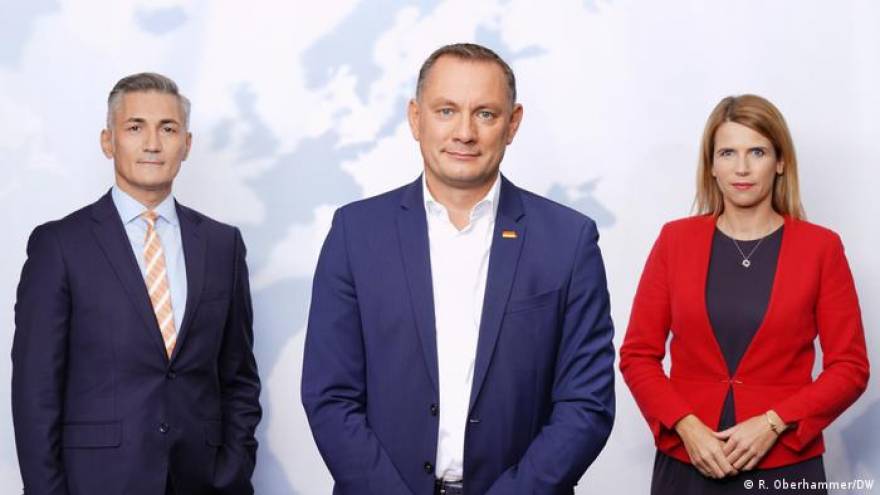 AfD'li Tino Chrupalla ile söyleşiyi DW Siyasi Haberler Baş Editörü Michaela Küfner ile DW Türkçe Yayınlar Yöneticisi Erkan Arıkan yaptı.