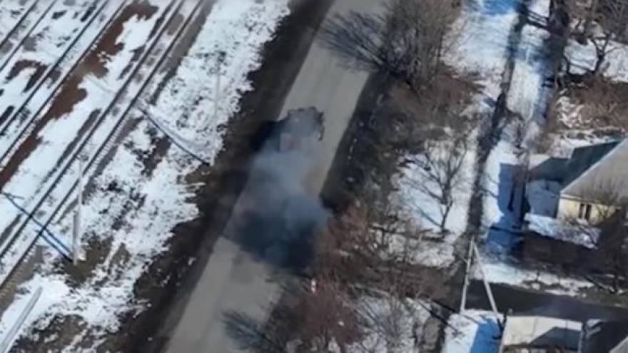 Ukrayna'nın Harkov kentinde yaşanan olayda, içinde Rus askerlerinin bulunduğu kamyonun bazuka ile vurulduğu görüldü. Ukraynalı askerin gövde kamerası ve havadan çekilen görüntülerde, saldırı sonrası kamyonun elektrik direğine çarparak durabildiği kayıtlara geçti.
