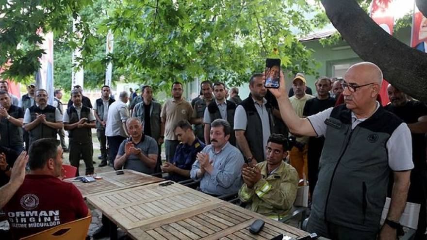 Tarım ve Orman Bakanı Prof. Dr. Vahit Kirişci, Değirmenyanı mevkisinde kurulan Koordinasyon Kriz Merkezi'nde orman işçileri ile yemekte bir araya geldi. Cumhurbaşkanı Recep Tayyip Erdoğan, Bakan Kirişci'yi arayarak orman işçilerine teşekkür etti. Erdoğan, "Herhangi bir olay cereyan etmeden bu işi bitirdiniz. Tabi 4 bin 500 hektar gibi bir arazi maalesef helak oldu. Dikimini yapmak suretiyle fidanlarımızı ekeceğiz ve yeniden ihya edeceğiz. Gerek Orman Genel Müdürlüğü, gerek tüm STK'lar hep birlikte mücadele verdik" dedi.