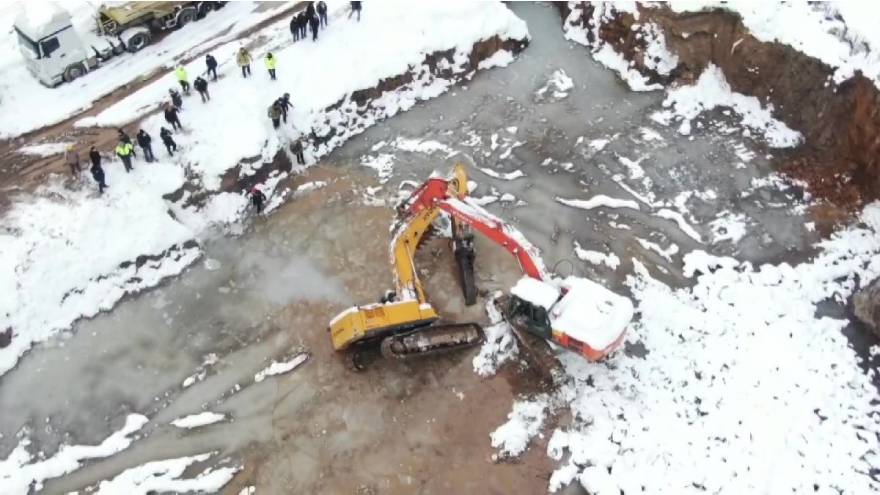 İş makinesinin ağırlığına dayanamayan buzların kırılmasıyla iş makinesi, içerisi su dolu çukura düştü. İnşaatta asansör boşluğu için kazılan çukura düşen iş makinesinin operatörü Yaşar, su içerisinde kayboldu.