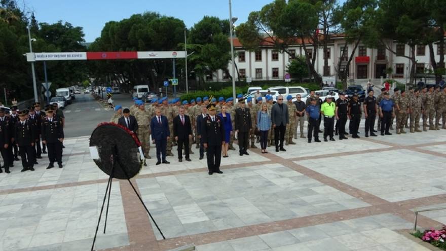 Muğla Cumhuriyet Meydanı’nda düzenlenen törene İl Jandarma Komutanı Tuğgeneral Ali Gemalmaz, askeri personel ve Emniyet mensupları katıldı...