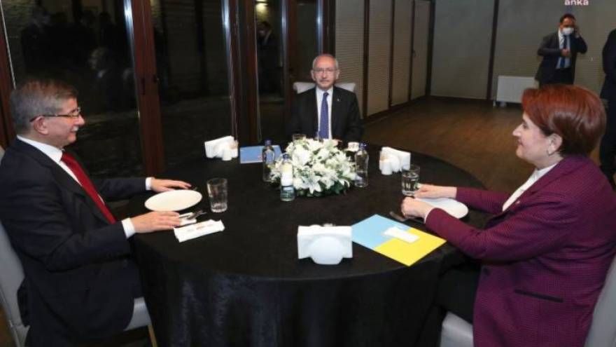 CHP Genel Başkanı Kemal Kılıçdaroğlu, İYİ Parti Genel Başkanı Meral Akşener ve Gelecek Partisi Genel Başkanı Ahmet Davutoğlu, akşam yemeğinde bir araya geldi.