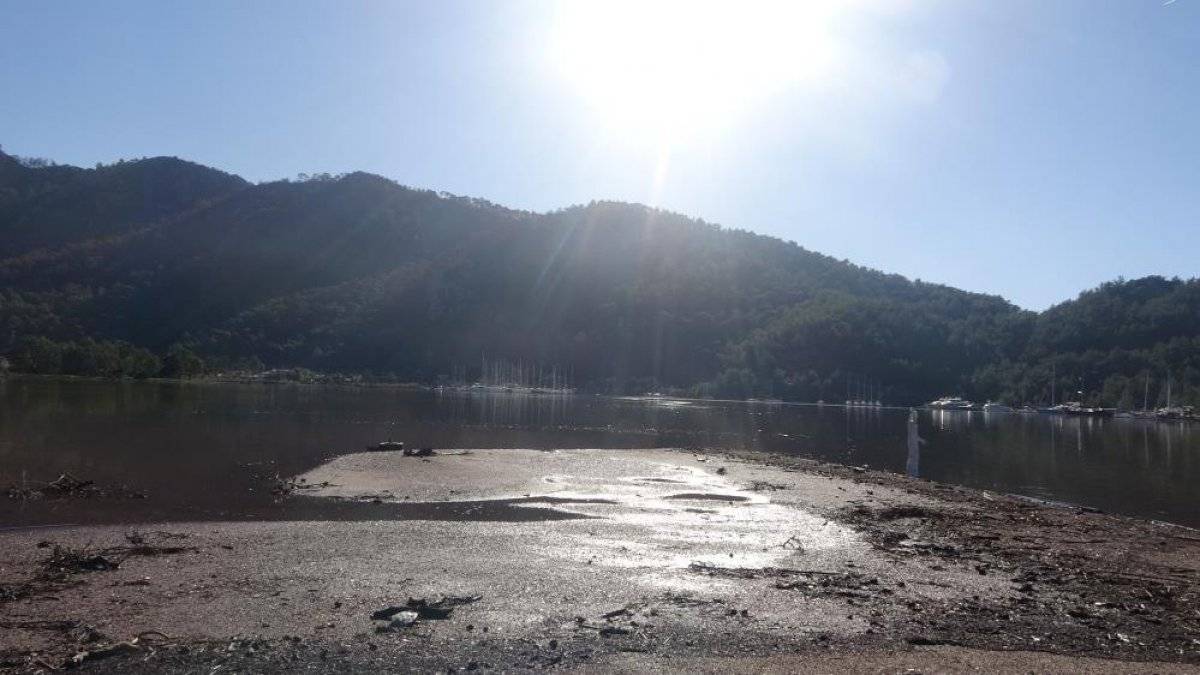 Dünyaca ünlü Kızkumu Plajı ise sel suları yüzünden kahverengiye döndü. Masmavi denizin son hali görenleri üzdü.