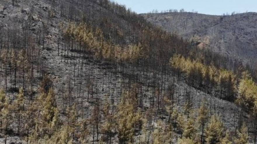 Görüntülerde kömüre dönmüş ağaçlar ve kül yığınları yer aldı.