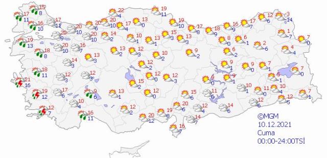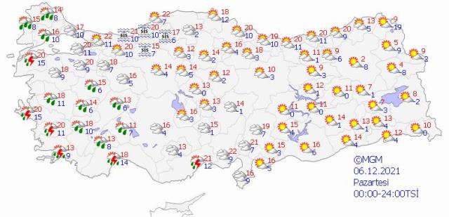 Meteoroloji Genel Müdürlüğü yeni haftanın hava durumuyla ilgili tahminlerde bulundu. Tahminlere göre, Marmara, Ege, İç Anadolu'nun batısı, Akdeniz bölgesi ve Batı Karadeniz'in batısında yağışlar etkili olacak. Özellikle yağışların Edirne ve Kırklareli çevrelerinde kuvvetli olması bekleniyor.