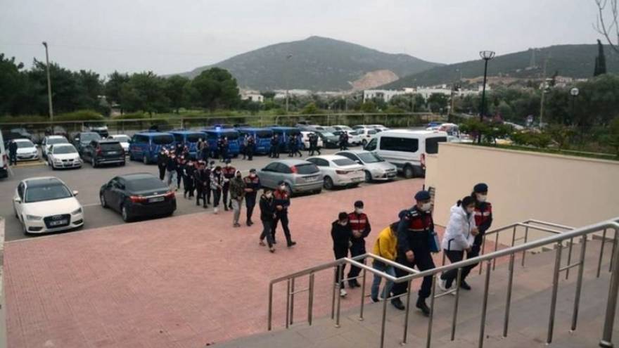 Jandarma komutanlığında işlemleri tamamlanan 27 şüpheli, Bodrum Adliyesi'ne sevk edildi. Şüpheliler, çıkarıldıkları mahkemece tutuklandı.