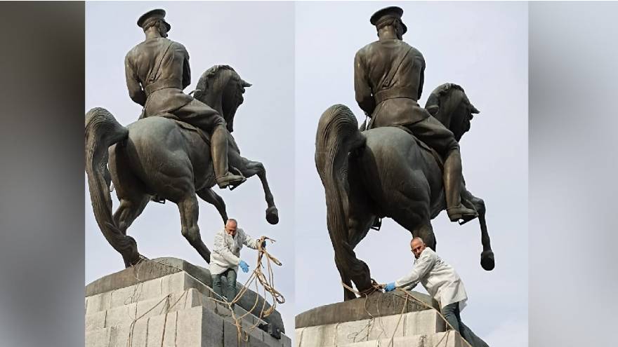 Onur anıtı olarak bilinen ve milli törenlerin düzenlendiği Atatürk anıtına dün akşam kimliği belirsiz kişi ya da kişiler tarafından saldırı yapıldı. Saldırganlar, Atatürk'ün üzerinde bulunduğu atın arka bacaklarına ip bağlayıp çekerek yıkmaya çalıştı.