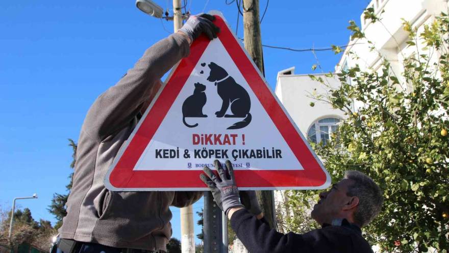 Bodrum Belediyesi, sokak hayvanlarının yoğun olduğu cadde ve sokaklarda araç sürücülerinin dikkatini çekmek için “Dikkat kediköpek çıkabilir!” uyarısı içeren tabelalar taktı. Bodrum Belediyesi, Muğla Veteriner Hekimler Odası (MVHO) ile Bodrum Kent Konseyi Hayvanların Yaşam Hakkını Koruma Çalışma Grubu arasında geçtiğimiz günlerde “Sokak Hayvanları Rehabilitasyon Projesi” protokolünün imzalanmasının ardından sokak hayvanları ile ilgili bir proje daha hayata geçirildi. Bodrum Belediyesi, ilçe genelinde sokak hayvanlarının yoğun olduğu cadde ve sokaklara, araç sürücülerinin dikkatini çekmek için Zabıta Müdürlüğü ekiplerince “Dikkat kediköpek çıkabilir!” uyarısının bulunduğu tabelalar yerleştirdi.