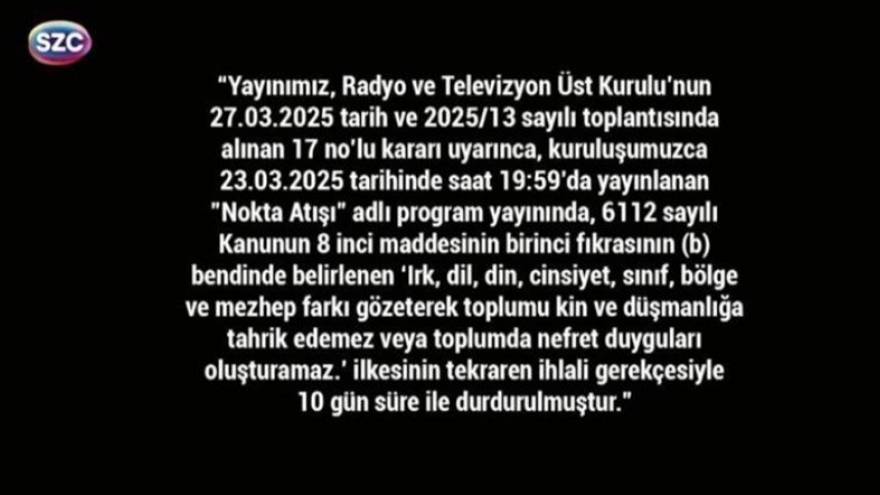 Böylece ekranlar bu gece itibariyle 10 gün süreyle karartıldı. Yayın boyunca sadece RTÜK’ün karar metni ekranlarda yer alacak.